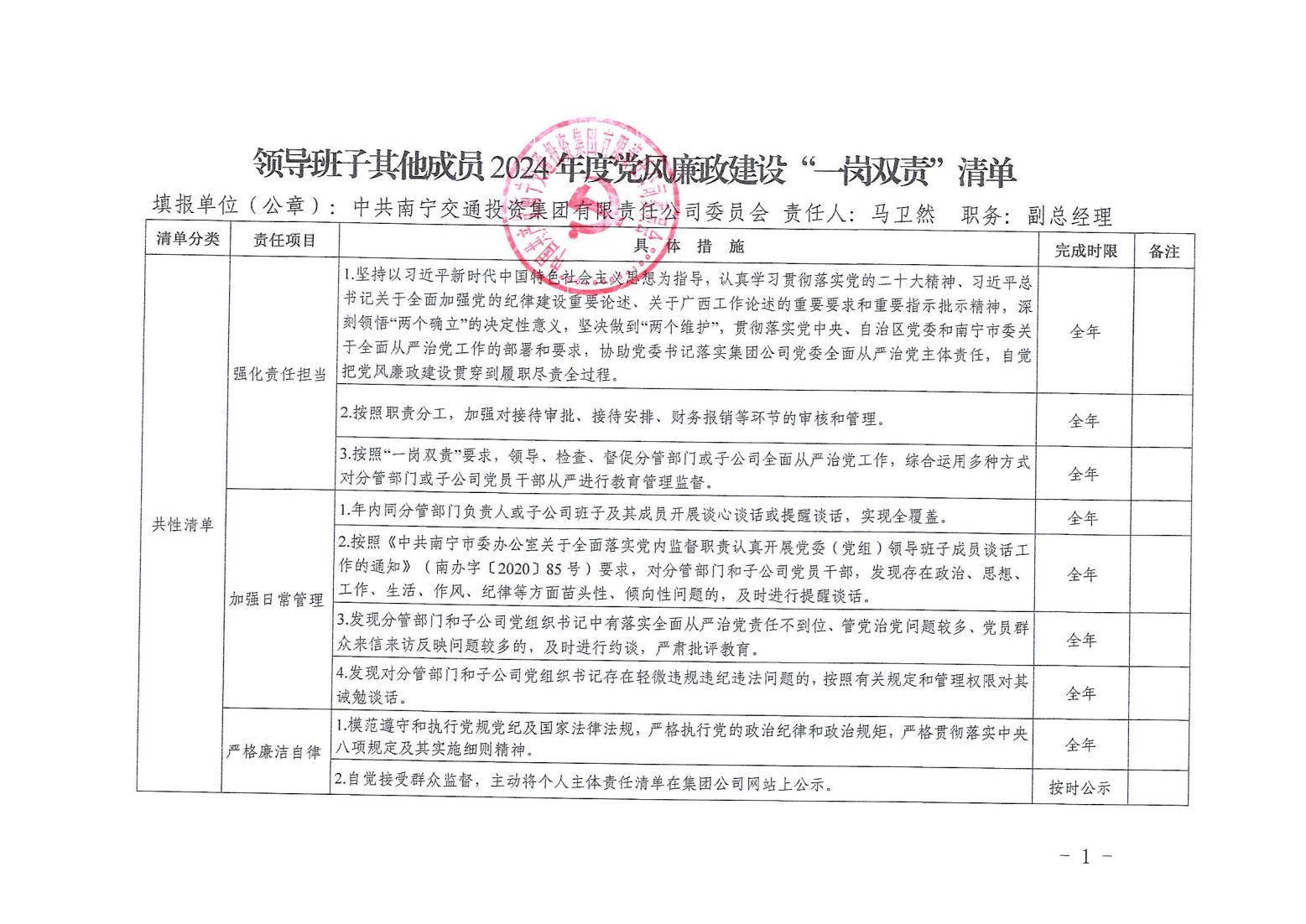 領(lǐng)導(dǎo)班子其他成員2024年度黨風(fēng)廉政建設(shè)“一崗雙責(zé)”清單(四)